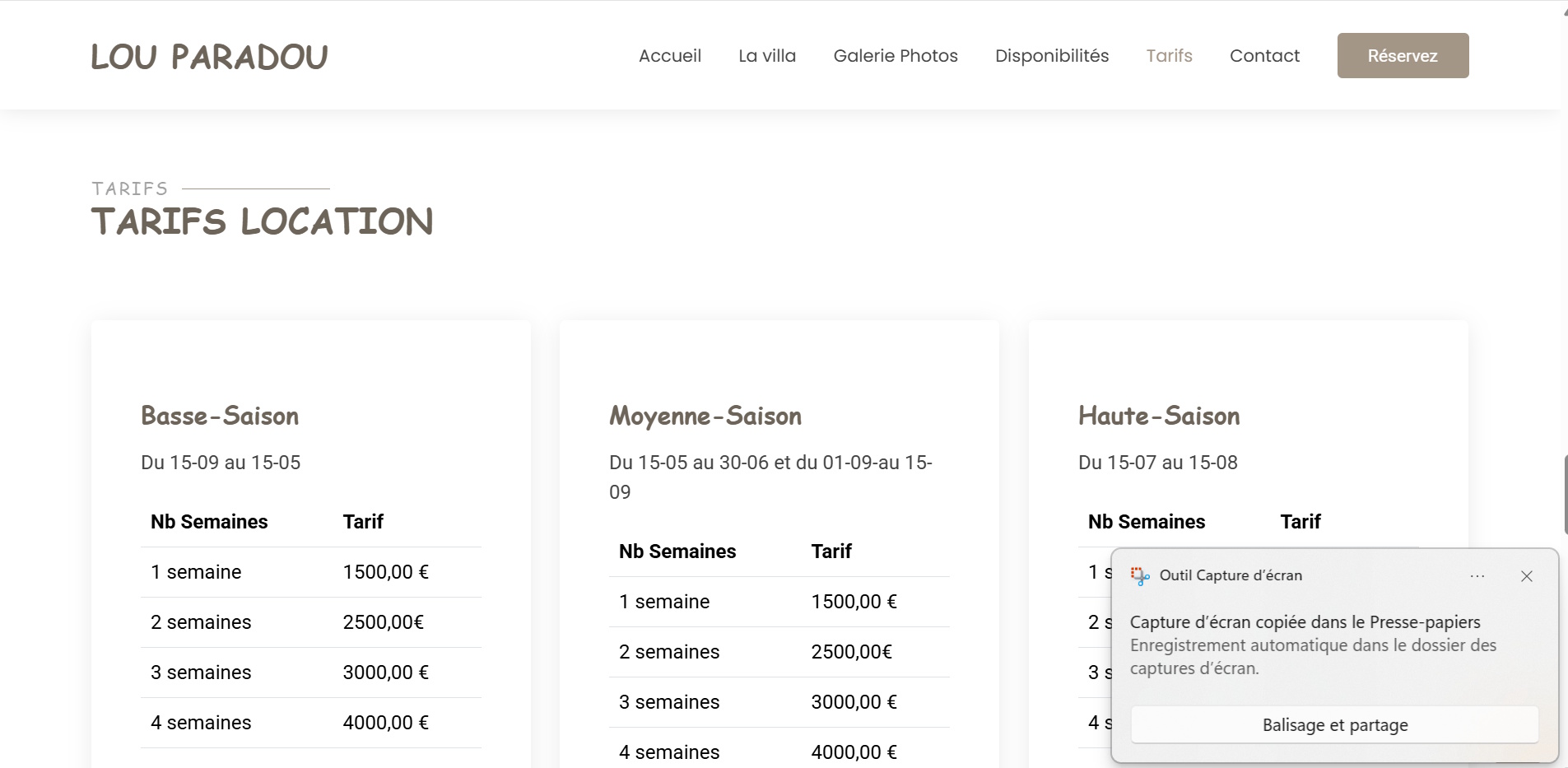 Chaque année, indiquez les nouveaux tarifs des locations en fonction des saisons (basse-saison, haute-saison ...)